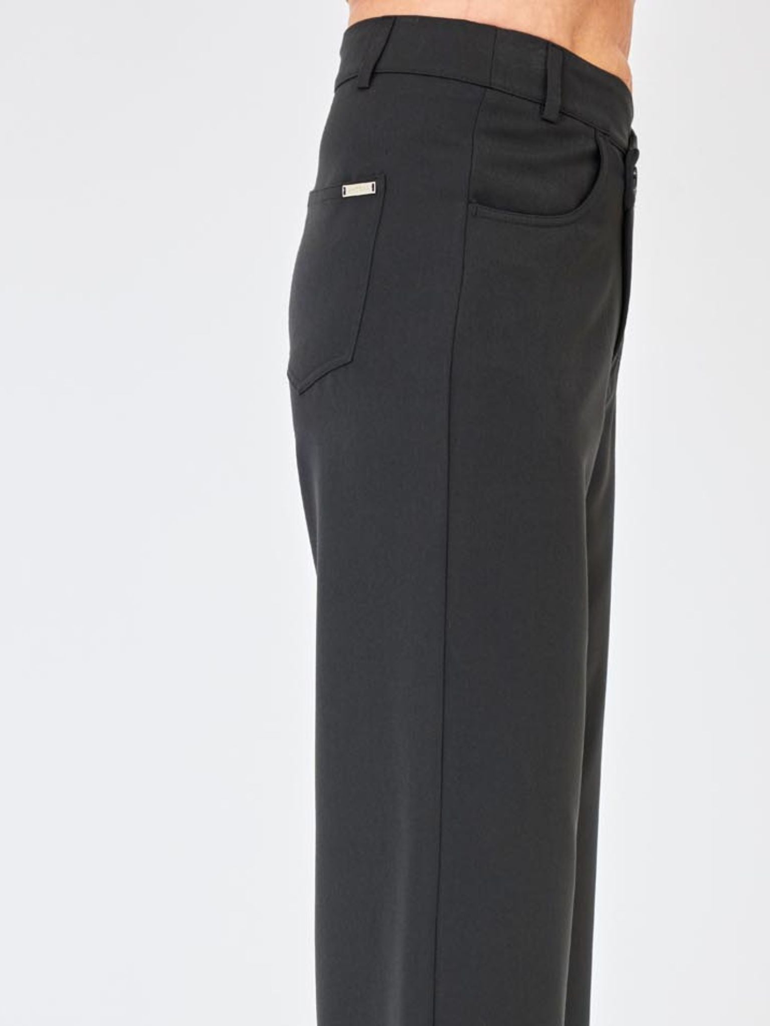 Sechs Gürtelschlaufen ermöglichen variable Gürtelstyles, während runde Eingriffstaschen vorne und aufgesetzte Gesäßtaschen hinten den Look abrunden. Das gerade, weit fallende Bein schafft eine elegante Silhouette – lässig, aber edel zugleich.