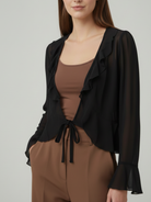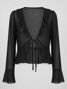 Transparente Leichtigkeit: Gefertigt aus feinem, leicht transparentem Stoff, eignet sich „Milena“ ideal als stilvoller Überwurf für Tops oder Kleider.